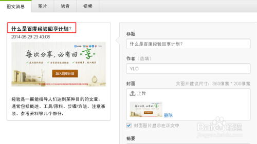 【1】上傳好合適的封面圖片后,填寫標(biāo)題和正文內(nèi)容。
