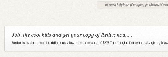 注意觀察Redux暗色背景上的淺色文字,你會發(fā)現(xiàn)它們都被添加上了投影效果。現(xiàn)在我們可以使用CSS3中的text-shadow屬性來完成文字的投影 設(shè)計,代替了在Photoshop中完成此項工作。而且使用CSS3來給文字添加陰影自由度更高,在瀏覽器支持的情況下,你可以給任意文字添加你想要的陰 影效果。當(dāng)然IE8以下版本的瀏覽器是不支持此項屬性的,這是我們在設(shè)計中需要注意的地方。另外,和前面提到的其它設(shè)計細節(jié)一樣,陰影的效果也要足夠柔 和,不可過于強烈,不然很容易讓整個設(shè)計看起來有一種臟臟的感覺,顯得不夠精致。