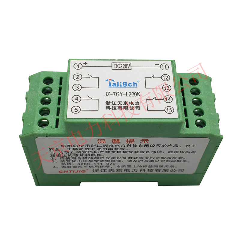 空白:無防塵罩; K:帶防塵罩及控制回路; B:大容量帶防塵罩及控制回路觸點數量:常開常閉轉換S:小功率中間; L:大功率中間Y:直流; J:交流端子排系列產品天京電力科技有限公司專用型號集成電路靜態中間繼電器